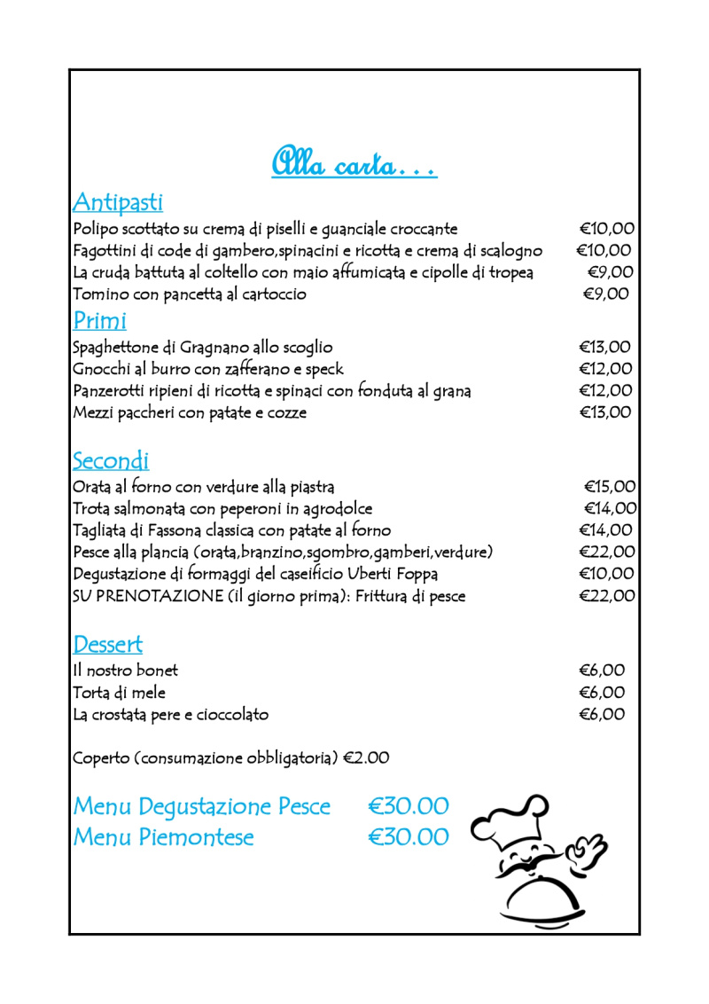 Il Titolare del trattamento è Il Pescatore Ristorante, con sede in Via Roma, 29 - 10068 Villafranca P.te (TO) P.IVA 10547320019.